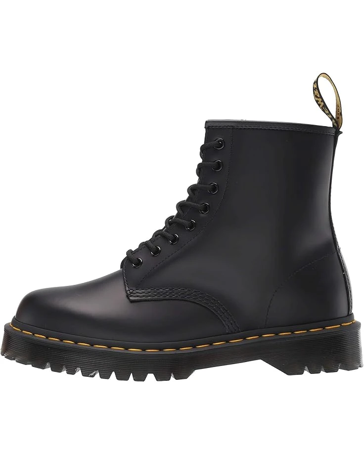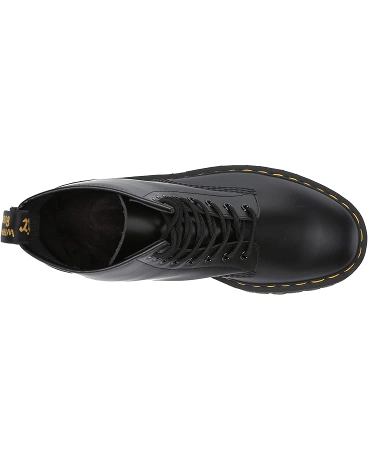 - Features classic Doc’s DNA including grooved edges, yellow welt stitching, and a scripted heel loop.