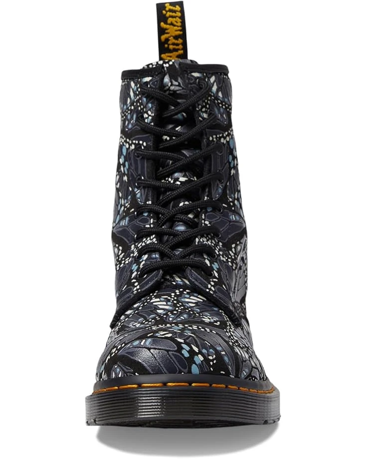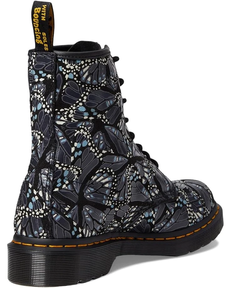 - Featuring a colorful floral print all over, the Dr. Martens® 1460 boots add a chic and vibrant touch to your outfits. The 8-eyelet lace-up closure of these printed boots offers a perfect fit. These suede boots come with a PVC midsole that cushions your steps. The yellow stitching and grooved sides offer added style and durability. These suede boots are perfect to pair with different outfits and styles.
