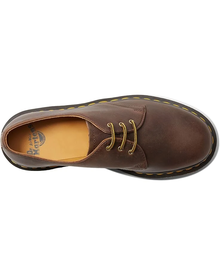 - Includes classic Doc’s DNA like yellow welt stitching, three eyelets, and a grooved air-cushioned sole.
