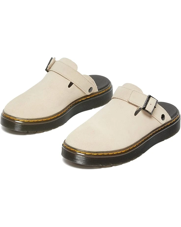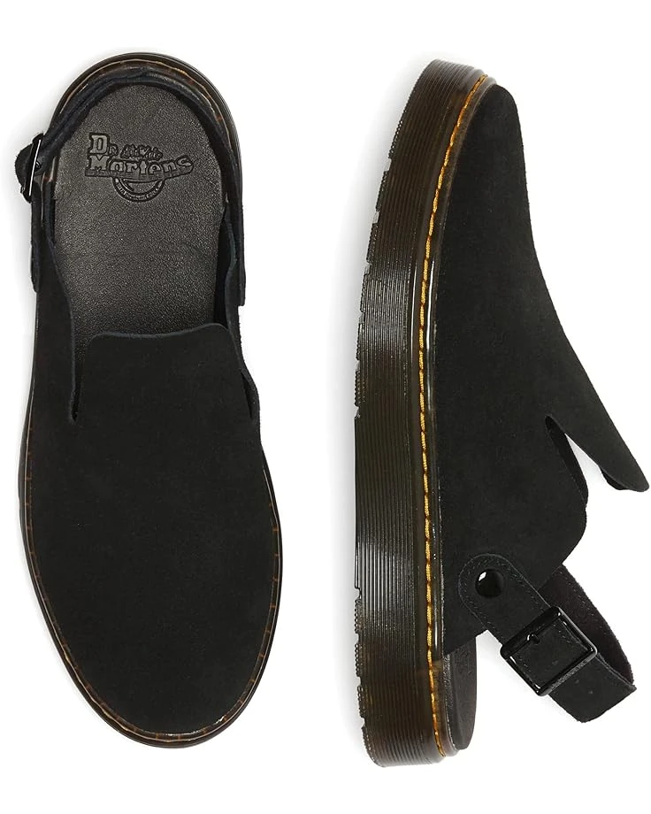 I love the style of these shoes! They are a cool alternative to the Birkenstock Boston. They are a bit heavier than the Boston, but not uncomfortably so. Out of the box they feel comfortable but a bit flat, however I expect they will mold to my foot like all Docs do. Also, the heel strap can be pivoted back to “sport mode”, however it’s just a piece of suede and it’s pretty flimsy considering the chunky sole. I think it’s more decorative than functional.