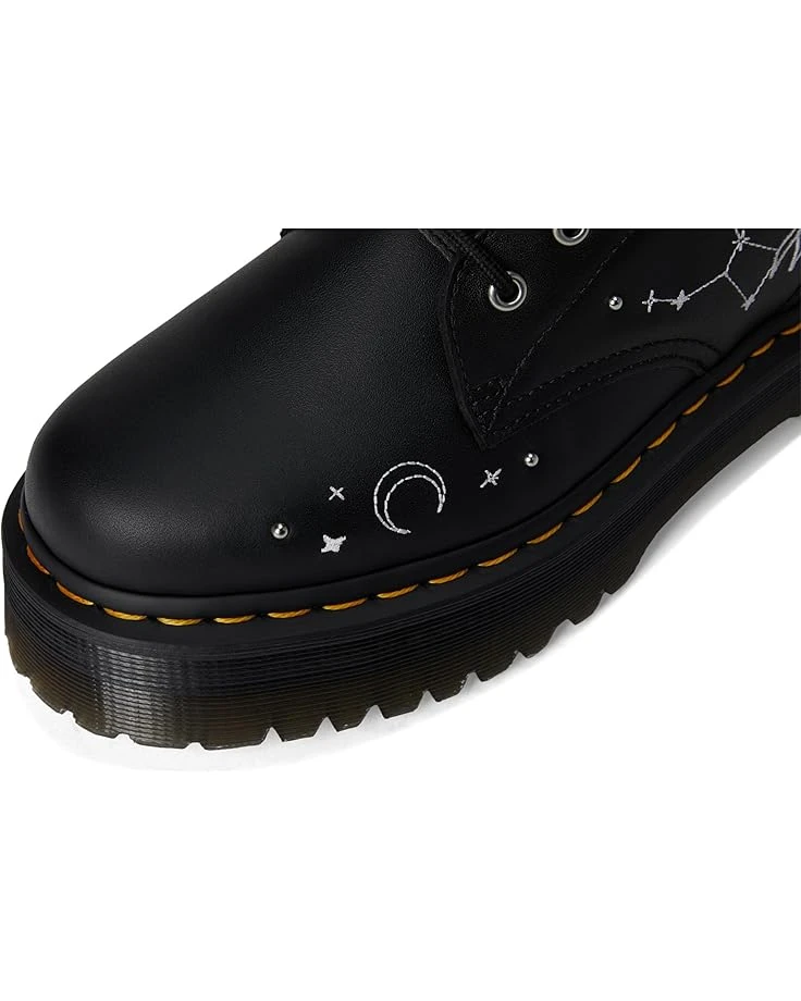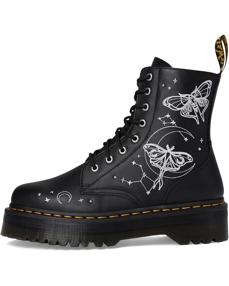 - Embroidered with gothic energy, the Dr. Martens® Celestial Jadon gets a late-night update with celestial moth motifs stitched on. The contrast-embroidered boots feature star and moth accents on the Original silhouette, delivered in soft, supple softy T leather upper. The Jadon is an eight-eye platform boot with a zippered side closure, designed with Dr. Martens signature heel loop and yellow-stitched sole. The mid-calf boots feature breathable leather lining, leather insole, and PVC, EVA midsole.