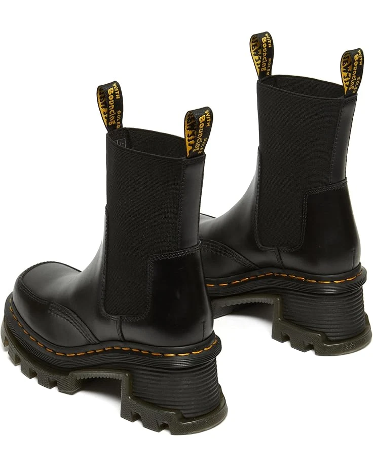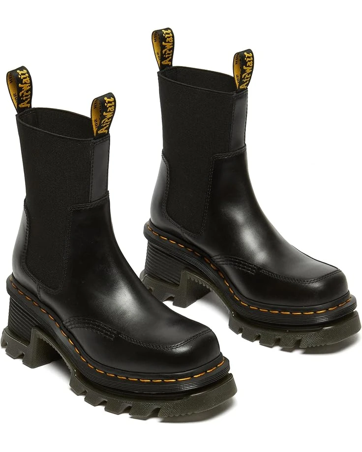 - Featuring extended elastic ankle inlay and cuff for easy on and off, the Dr. Martens® Corran Chelsea boots are perfect to style up your outfits. Easy to slip on and off, the classic Chelsea style offers a chic look. These leather boots feature signature welding and yellow stitching offers added durability. Match your different outfits and styles by wearing these pull-on boots. Turn heads wherever you go by wearing these Chelsea boots.