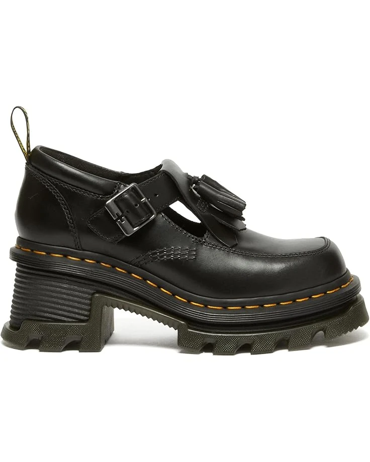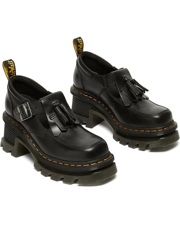 - Climb every mountain in style wearing the Dr. Martens® Corran Mary Jane. Crafted from leather upper, eva foam footbed, and pvc, eva midsole, this pair of shoes features chunky block heels, round toe design, T-bar strap with buckle closure, back pull tab, and stitching details.