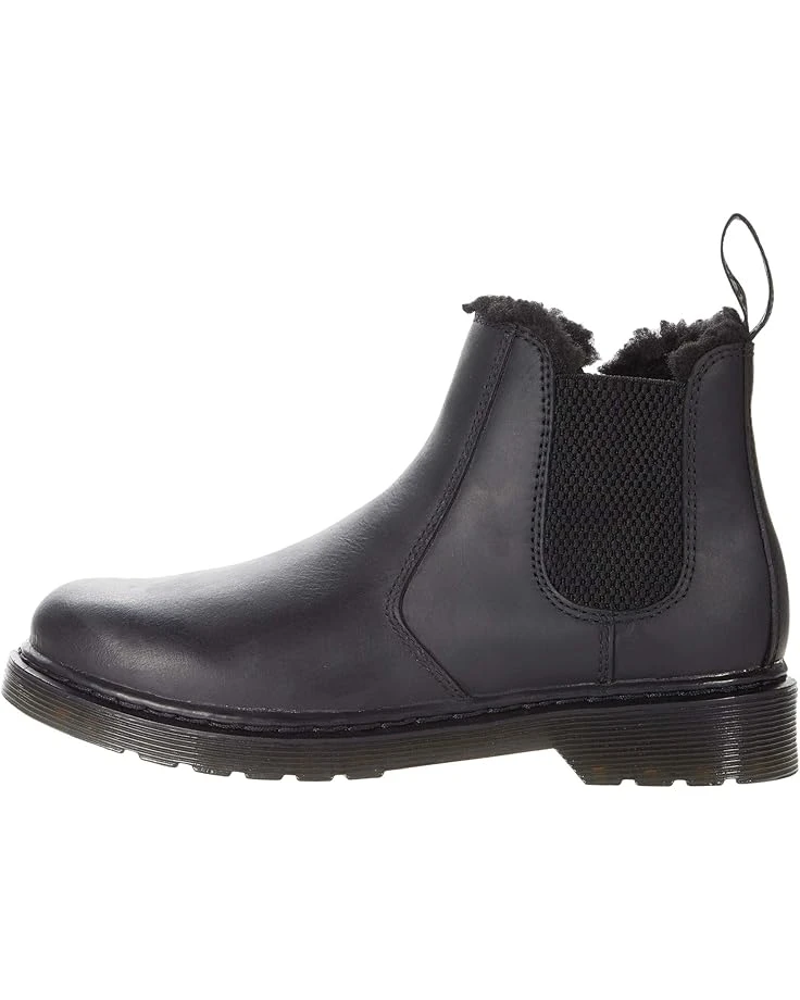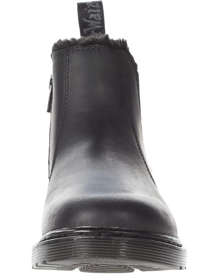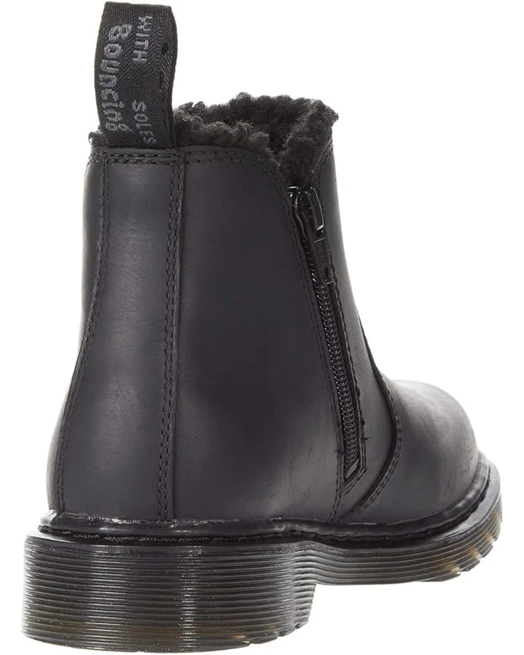 - Scaled down, but big in spirit, these Dr. Marten’s® Kid’s Collection 2976 Leonore Mono boots were designed with the next generation of rebels in mind. These classic leather Chelsea-style boots feature a Sherpa fleece lining, and side goring panels so your firebrand can keep on moving without a fuss.