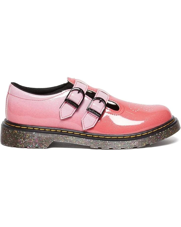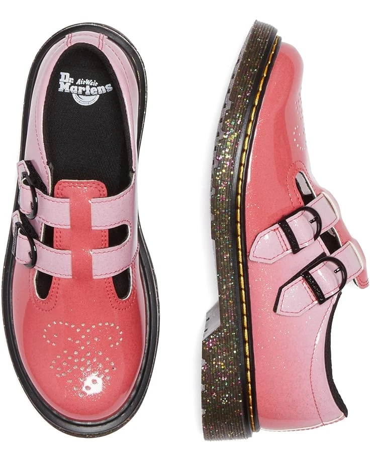 - Give your child an impressive look with the shiny and polished Dr. Marten’s® Kid’s Collection 8065 Flats. The T-bar-fastening has adjustable buckles with a perforated design on the front.
