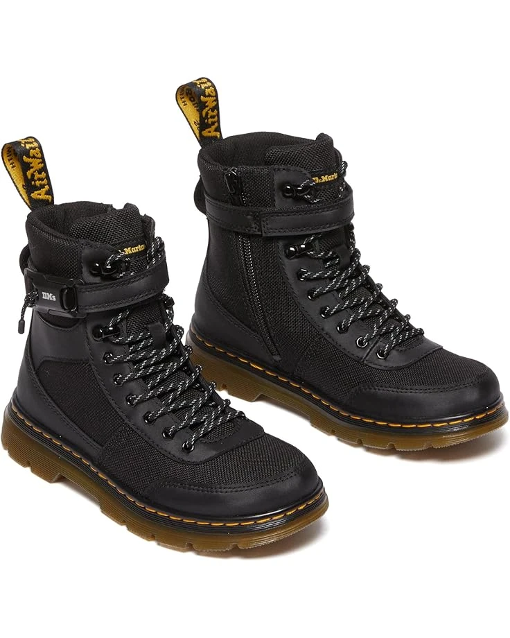 - Let your little one walk in style and comfort by wearing Dr. Martens® Kid’s Collection Combs Tech boots. The round-toe boots have an ankle pull-on tab that makes them easy to wear and take off. The lace closure with zipper and a hook-and-loop strap offers a secure fit. The leather and synthetic upper with textile lining and EVA foam footbed ensures maximum comfort for all-day wear.