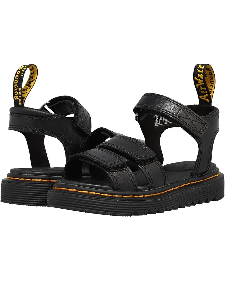 - They’ll play all day in comfort in the stylish Dr. Marten’s® Kid’s Collection Klaire strappy sandals.