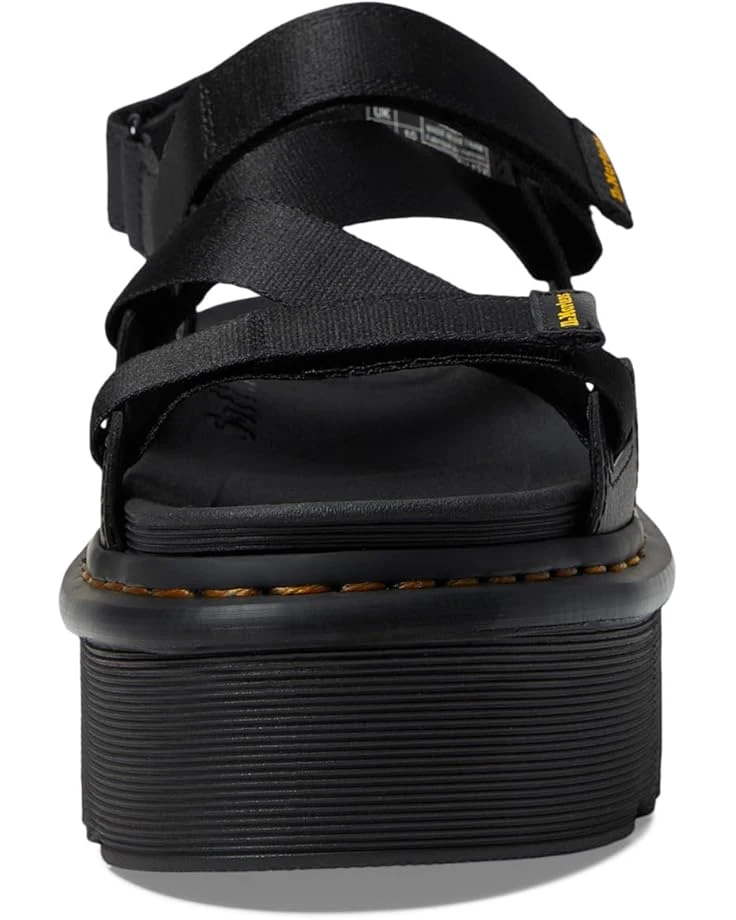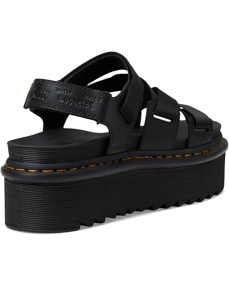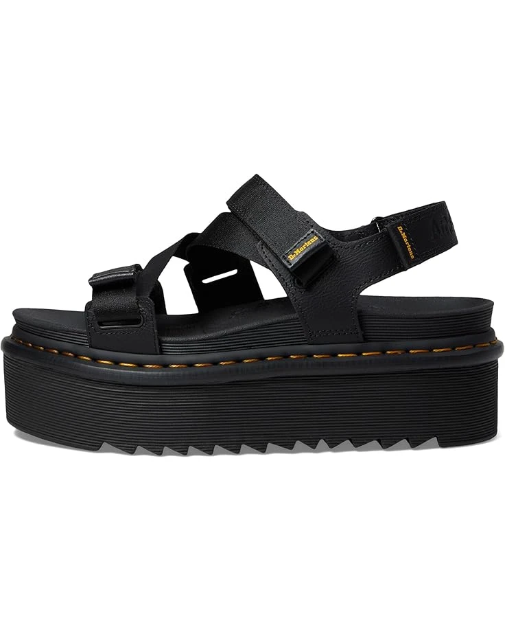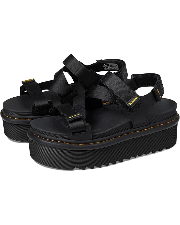 - The Dr. Martens® Kimber II sandals are designed to offer superior comfort and a bold look. The strappy PU-coated leather upper features multiple riptape straps that provide you with a secure fit. These sandals are crafted with a leather insole and lining. Finished with yellow stitching and Goodyear welt construction, these platform sandals offer superior comfort and durability.