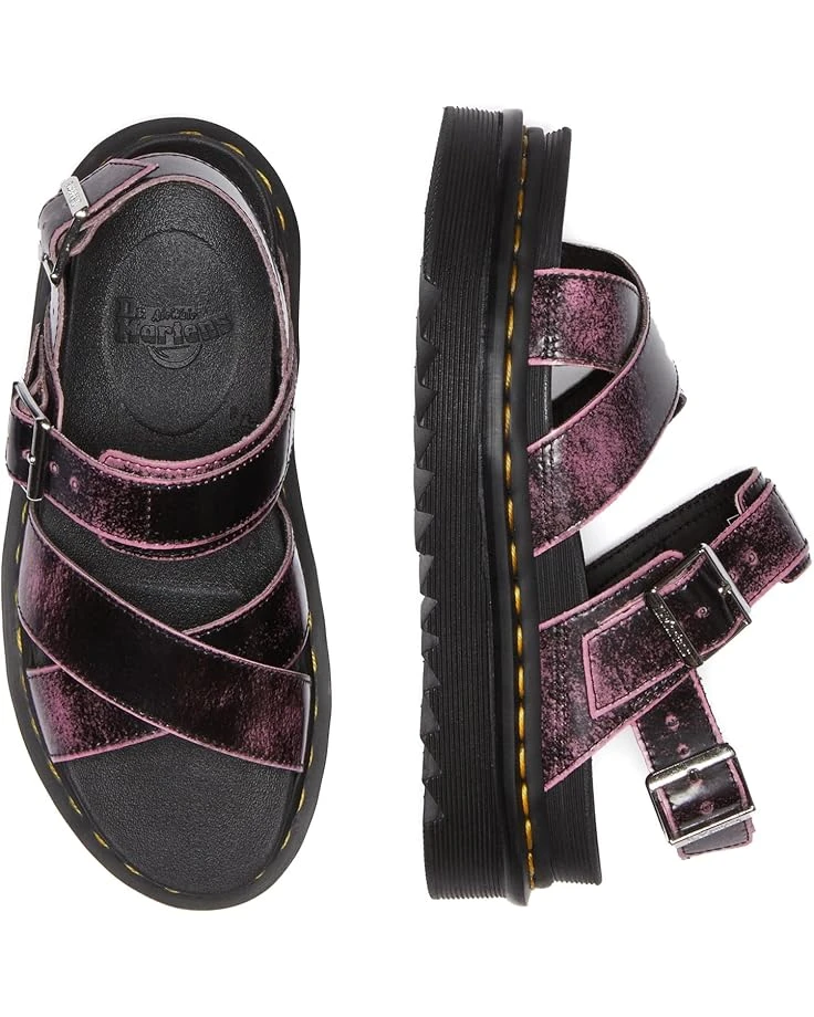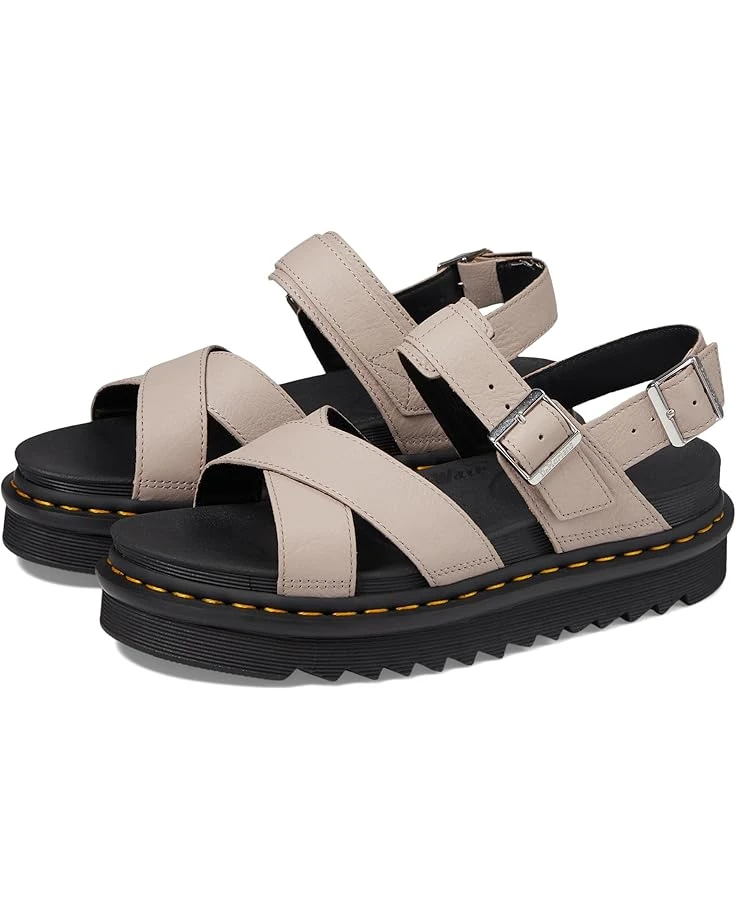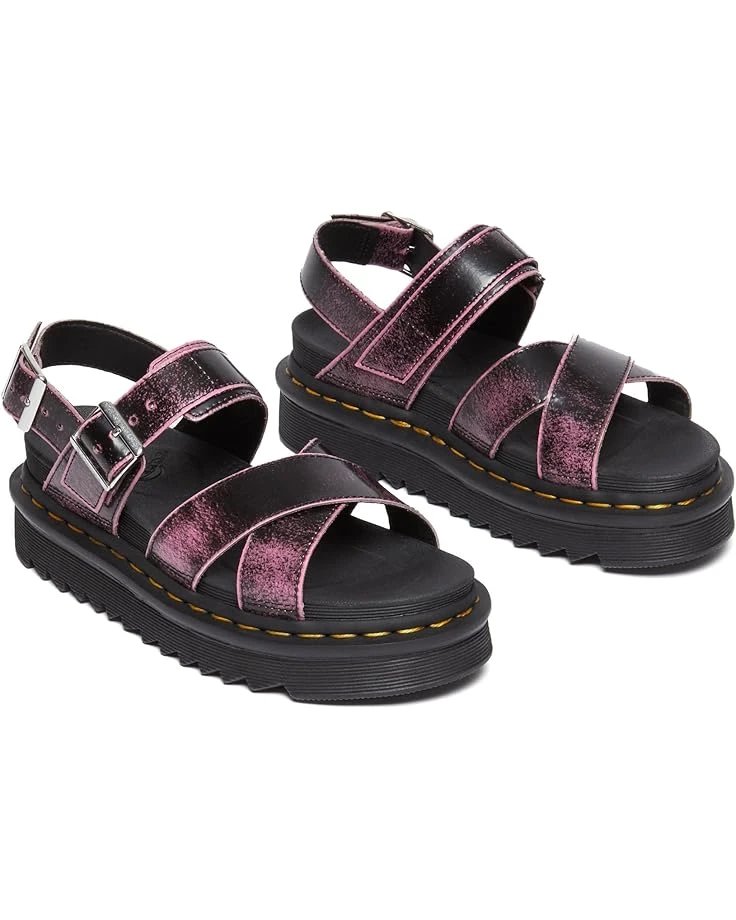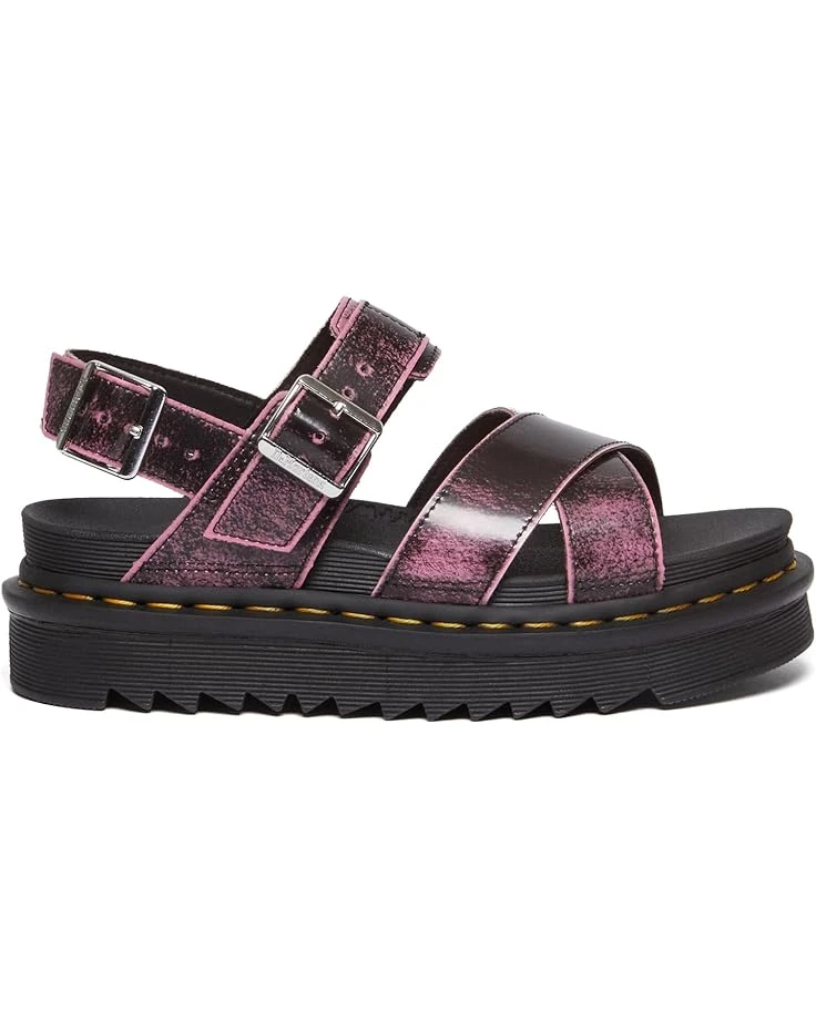 - Refresh your footwear wardrobe with the classy Dr. Martens® Voss II. It is crafted from leather upper, eva foam footbed, and pvc, eva midsole. This pair of platform profile sandals features open round toe, crisscross strap on the top, welt stitching, grooved edges, and buckle closure on ankle strap. It comes with brand detailing on the footbed.